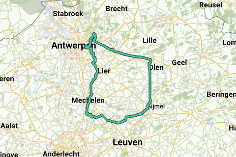 Ist 130 km zu lang? Mach es in Abschnitten. Es gibt viele Bahnhöfe auf dem Weg, wo du anschließen kannst (Weerde, Mechelen, Nekkerspoel, Katelijne-Waver. Und in der Nähe der Stationen Duffel, Lier, Boechout, Berchem, Zurenberg, Borgerhout, Nijlen, Bouwel, Herentals, Aarschot, Gelrode, Wezemaal, Rotselaar, Wespelaar, Haacht, Boortmeerbeek und Hofstade (Zemst)).