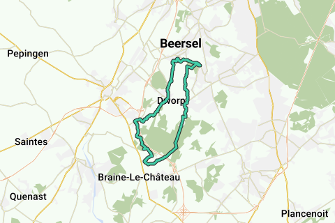 Biegen Sie dann in den Deuveressenweg (Deuveressen ist ein Dialektwort für 'Dämonen') ein, bis er an die Rilroheide anschließt, die Sie dann auch folgen und an der Mariakapel links abbiegen. Halten Sie links und folgen Sie dem Kampendaal bis zum Wald, wo er in die Veertigbunderdreef übergeht. Die Veertigbunderdreef führt Sie durch das Hallebos bis nach Kasteelbrakel (Braine-le-Château), wo der Name bald in 'rue Landuydt' wechselt. Nachdem Sie den Wald ungefähr 600 m verlassen haben, kommen Sie zu einer Y-Kreuzung, wo Sie links des weiß gestrichenen Hauses anhalten (nicht links abbiegen) und die rue Landuydt folgen, bis Sie rechts in die Straße mit dem seltsamen Namen: rue Blangugue einbiegen.