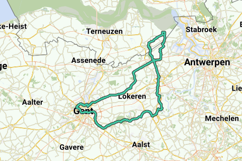 Schöne Fahrt ins Land van Saeftingen ab Gent. Es gibt eine etwas belebtere Passage in Sint-Niklaas, aber ansonsten sind es alles relativ ruhige Straßen, ideal für das Rennrad. Das letzte Stück entlang der N70 ist gut, um ein bisschen extra Geschwindigkeit zu machen!
