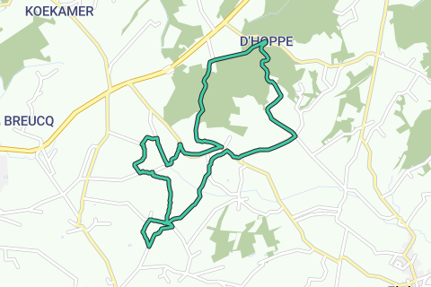 Von unserem B&B La Douceur de la Miclette in Ellezelles, dem Eingangstor zum Pays des Collines, gehen wir durch Täler, alte Höhlen und Felder in Richtung D'Hoppebos/Bois de La Houppe zur Brauerei Quintine und zurück.