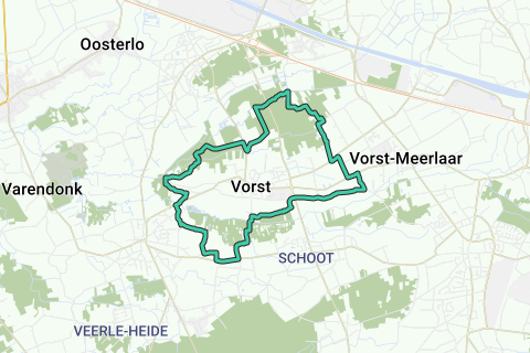 Wir haben den Spaziergang an der Bibliothek von Vorst gestartet und ihn im Uhrzeigersinn gegangen. Am Anfang kreuzen wir sofort den Großen Laakbach, den wir nach 3,5 km an dem Wasserturm von Veerle wieder kreuzen. Kurz folgt er dem Kleinen Laakbach durch das schöne Biezenhoed Naturschutzgebiet.