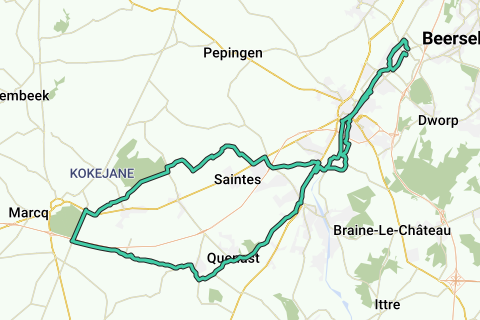 Lot - Eisingen - Buizingen - Halle - Rodenem - Berendries - Lembeek - Hondzocht(molen) - Mussain - Bosstraat - Bierk - Lettelingen - Edingen - Grand Champ - Stoquois - Roosbeek - Quenast - Tubeke - Lembeek - Halle - Buizingen - Eisingen - Lot