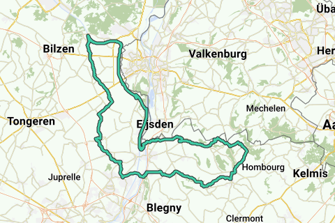 S.M.V. - S.G.V. – Mesch – Withuis – Moelingen – entlang des Kanals bis Kanne – Brücke über – entlang des Kanals bis Eigenbilzen – durch Vlijtingen, entlang Riemst, Hekelom nach Valmeer – Roclenge – Houtain – Oupeye – Argeteau – Richelle – Dalhem – Mortroux – Val-Dieu – Aubel – Hagelstein – Die Plank - S.M.V.