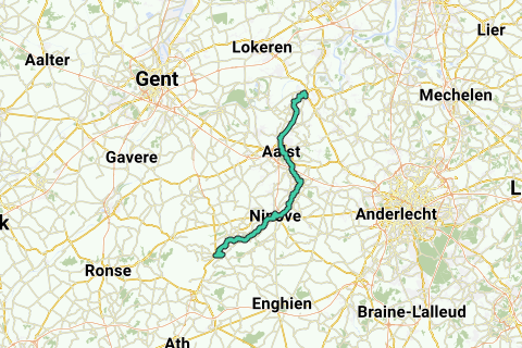 Diese Fahrradroute führt dich entlang der Dender zu den pulsierenden Städten wie Geraardsbergen, Aalst, Wieze und Dendermonde. Die Route beginnt und endet an einem Bahnhof.