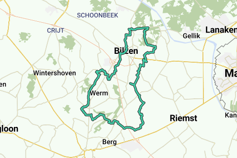 Diese Radroute mit einigen mäßigen bis steilen Anstiegen beginnt und endet an der Landcommanderij Alden Biesen, einem der größten Schlossanlagen der Euregio. Die Strecke führt dich vorbei am ältesten Weinschloss Belgiens, einer Wasserburg und imposanten Viereckshöfen. In Vrijhern entdeckst du zwischen den schattigen Wäldern eine stimmungsvolle Kapellenruine.