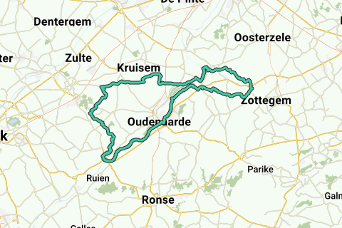 Diese Route lässt dich ein Stück der flämischen Ardennen kennenlernen, ohne steile Anstiege! Sanft entlang pittoresker Dörfer wie Dikkele, Meilegem, dem schönen Mullem, Wannegem-Lede und weiter entlang des Nokere Berges (nach unten!), Wortegem-Petegem, Ghijselbrechtegem, Anzegem und Petegem entlang der Schelde nach Oudenaarde und zurück über Zwalm nach Velzeke.