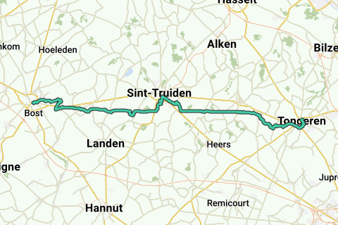Zu Beginn der Fahrt folgst du ein wenig der Großen Gete, um über Landen nach Limburg einzutauchen. Dort bist du schnell auf dem römischen Weg. Nach einem Umweg bis nach Sint-Truiden erreichst du die alte Heerstraße erneut, diesmal um in fast gerader Linie nach Tongeren zu fahren. Bevor du in Tongeren einfährst, überquerst du noch die Jeker. Dieser Fluss ist sozusagen der wichtigste Grund für die Entstehung der alten Stadt.