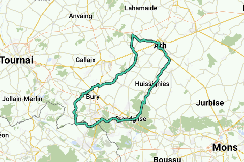 Diese Route beginnt und endet an: Route de Frasnes, 7800 Ath. Diese Route ist eine ideale Trainingsroute in der Winterzeit bei trockenem Wetter.