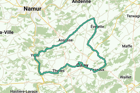 Startadresse der Route: Rue Basse, 5330 Assesse. Allgemeine Schwierigkeit dieser Route: 83/100. Geben Sie diese Route in Ihr GPS ein und losfahren.