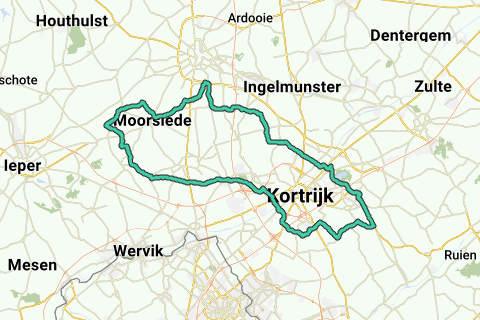 Start- und Endpunkt der Route: Pottelberg, 8500 Kortrijk. Allgemeiner Schwierigkeitsgrad dieser Route: 70/100. Diese Route ist eine ideale Trainingsroute in der Winterzeit bei trockenem Wetter.