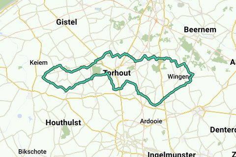 Startadresse der Route: Kortemarkstraat, 8820 Torhout. Allgemeine Schwierigkeit der Route: 57/100. Gemacht zum Training.