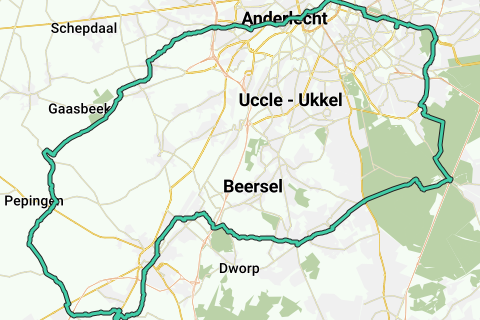 Startadresse der Route: Brusselsesteenweg, 1652 Beersel. Gesamter Anstieg: 421 m. Die Route führt unter anderem an folgenden interessanten Punkten vorbei: Kirche von Alsemberg (Kirche), Luizenmolen Anderlecht (Windmühle), Königliche Bibliothek Albert I, Staatsrat (Gerichtsgebäude).