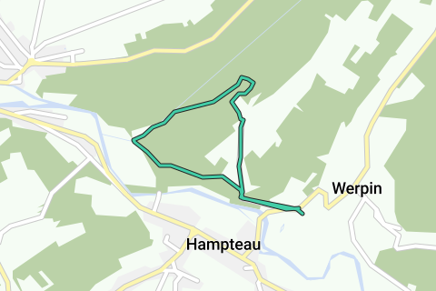 Abfahren und Parken in einer Nebenstraße etwa 300 m hinter der Brücke von Hampteau (Richtung Werpin). Ziemlich abwechslungsreich: offen/Wald, Plateau/Tal. Ungefähr 1500 m Asphalt.