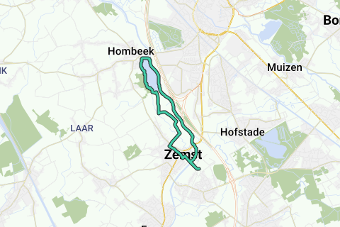 Dort gehst du Richtung Zemst (Nordwest, unter der Eisenbahnlinie 25 Weerde Mechelen), dann geradeaus bis zum Uferweg an der Zenne. Nimm dort den Uferweg nach rechts und folge weiter der Zenne (auch über die Brusselsesteenweg).