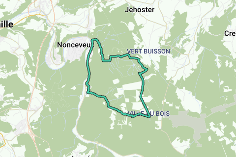 Auf dem Bergrücken sind wir nahe Vert-Buisson. Dieser friedliche Ort war im Mittelalter eine willkommene Haltestelle für Reisende, die „la Vecquée“ folgten, eine Route, die das Fürstentum Lüttich mit dem von Stavelot verband. Der lange Durchgang durch die Wälder endete im Weiler Ville-au-Bois. Beim Verlassen des Weilers folgen wir dem Lauf des Bergbachs „la Chefna“, der kurvenreich zwischen den Felsen verläuft.