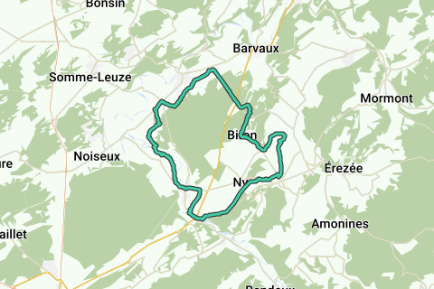 Kurz nach Monville folgen wir der Ourthe, die sich durch die Wiesen schlängelt. Da das Tal in Fronville von den steilen Felsen der Famenne geschützt ist, ist es dort etwas wärmer. Kurz nachdem wir rund um den Campingplatz gefahren sind, steigt die Route leicht nach Petit-Han an, wo uns ein langer Zuweg nach Biron erwartet.