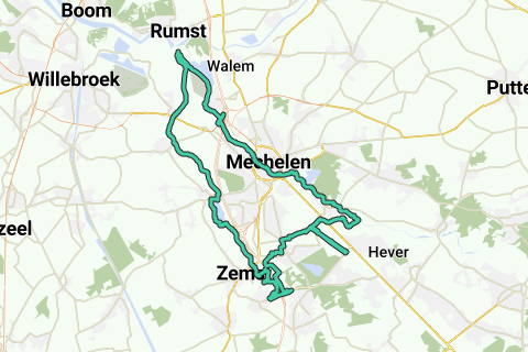 Diese Route ist 42 km lang. Der Freizeitradfahrer wird mit dieser verkehrsfreien Runde sein Glück finden, aber auch der Läufer wird diesen flachen Wasser 'lauf' von 26 Meilen zu schätzen wissen. Der Abzweig zu den nördlichen und südlichen Barebeek wurde ausgelassen (siehe z. B. Bronzen oder Goldene Dreieck), sodass die Runde genau 42,2 km lang ist. Ab 2011 kannst du die Verkürzung über das Zennegat nehmen (siehe die Fahrradroute ‚Goldenes Dreieck Zenne Barebeek Dijle‘ unten im TAB ‚Routen‘ von https://www.routeyou.com/user/view/124619/wy-homepage.nl ). Willst du ein größeres Dreieck, schau dir die Fahrradroute ‚Bronzen Dreieck Zenne Barebeek Dijle Rupel‘ an. Dieses Goldene Dreieck beginnt am gleichen Standort am Weerdse Fischteich (Nordparkplatz) und nutzt die (Ende 2011 in Betrieb genommene) Brücke über die Zenne am Zennegat, sodass du den Übertritt von den linken Ufern der Dijle zur Zenne machen kannst (siehe auch ganz unten für das Update). Dies ergibt eine sehr angenehme flache und ländliche Fahrradrunde (der überwiegende Teil autofrei) von 40 km, in der für die sportliche Familie viel zu erleben ist, genügend Abwechslung und Überraschungen bietet - einschließlich einem Kinderbauernhof, dem Entdecken von zwei Wasserläufen übereinander, Beobachtungen von Störchen und an verschiedenen Stellen die Möglichkeit für eine Trinkpause mit Spielgelegenheiten oder einen Snack. Auch das Radfahren durch Mechelen verläuft entlang eines Parks oder an verkehrsarmen Orten entlang der Binnendijle. Die Barebeek entsteht aus einer Ansammlung kleiner Gräben zwischen Machelen und Zaventem und befindet sich im Dijlebecken (siehe http://www.vmm.be/publicaties/ecol_herstel/Barebeek.pdf und http://publicaties.vlaanderen.be/docfolder/168/Computermodellering_Barebeek.pdf). In der Umgebung von Vriezenbroek in Weerde liegt die Barebeek weniger als 150 m von einer Zennemeander entfernt. Unbestreitbar ist dies der näheste Standort zwischen zwei Wasserläufen des Dijle- und Zennebeckens stromaufwärts vom Zennegat. (Vor dem Bau der E17 schlängelte sich die Barebeek entlang des Rubenskastells höher nach Weerde, aber diese Meander wurde an der rechten Seite der Autobahn kurzfristig geschlossen.) Diese Fahrradroute nutzt dieses kurze 150 m, um die beiden Becken in Schleifenform abzufahren/laufen. TRAJECT mit Info: Die Tour beginnt am Nordparkplatz des Fischteiches Weerde und führt uns über den Fischteich stromaufwärts zur Zenne. Wir fahren weiter zur Schumanlaan und biegen links ab, ohne sie zu überqueren. Damit fahren wir in entgegengesetzter Richtung und müssen an den Auf- und Abfahrten der E19 besonders auf herannahende Autos achten, die dich nicht bemerken. Über die Autobahn zweimal unmittelbar links. Das bringt uns zu den Zennemeandern rechts von der E19. Wir fahren kurz durch einen kleinen Wald (im Sommer etwas stachelig) und gelangen zur Bahngleisanlage, die wir rechts verfolgen. Direkt an der Zenne können wir unter die Bahngleise hindurch und dann über die einzige verbleibende alte Brücke der durch die E19 unterbrochenen langsamen Straße über die Zenne. Nach 4 km erreichen wir eine scharfe Zennemeander, die auf die E19 führt, über der die neue Eisenbahnbrücke Mechelen-Zaventem verläuft. Die Barebeek befindet sich da nordöstlich im Feld in weniger als 150 m. Von dort folgen wir der Barebeek bis zu ihrem Unterlauf unter der Leuvensevaart (nach 8,5 km). Zuerst entlang des Wanderwegs 'zwischen Zenne und Barebeek' (= die Zemstsesteenweg rechts über die Barebeek nehmen, und ein Stück weiter links in den Wald). Weiter in Hofstade teilt sich die Barebeek, wir folgen dem nördlichen Abzweig, indem wir an der Tervuursesteenweg zuerst links über die Barebeek, dann die scharfe Kurve nach rechts nehmen (Balkweg, endet) die auf den Gartenweg ‚Barebeekwanderung‘ führt, den wir folgen. Ein Stück weiter kannst du einen toten Weg rechts nehmen, der entlang eines Hauses zur Barebeeksplittung führt (Läufer: überspringen): Du kannst dort zu Fuß über eine kleine Brücke über die nördliche (oder kleine) Barebeek 50 m weiter die Teilung sehen. Dieser Nordabzweig wird weiterverfolgt (Rückkehr aus der Sackgasse) bis zum Unterlauf an der Leuvensevaart. Dort siehst du die nördliche (kleine) Barebeek von rechts wieder zusammenfließen mit der südlichen Barebeek. Wahrscheinlich wurde bei der Ausbaggerung der Vaart im Jahr 1752 diese Barebeeksplittung wieder zusammengebracht, um nur 1 Unterlauf unter der Vaart zu schaffen. Um an der Nordseite des Unterlaufs zu gelangen, müssen wir 1,5 km der Leuvensevaart stromaufwärts folgen bis zur nächsten Hofstadebrücke und dort die rechte Uferseite 1,5 km zurückfahren. Die Barebeek teilt sich nach dem Unterlauf zurück in ihr ursprüngliches separates Bett und setzt ihren eigenen Weg weiter durch den Tierpark Plankendaal fort. Du wirst von der Vaartdijk sicherlich ein paar Störche und andere Tiere bemerken können. Der Umweg ist es wert! Wir folgen nach dem Unterlauf wieder der nördlichen kleinen Barebeek. Wir überqueren die Leuvensesteenweg, folgen dem linken Ufer und tauchen gemeinsam unter die Bahngleise Mechelen-Muizen-Hofstade-Weerde und weiter unter die Bahngleise Mechelen-Haacht-Leuven. An der T nach rechts, um die kleine Barebeek wieder aufzugreifen. Am Ende dieses Weges bemerken wir vor uns bereits die Einmündung der Barebeek in die Dijle. Zwischen dieser T und der Mündung fließen die zwei Seitenarme östlich des Wäldchens wieder zusammen. Wir nehmen rechts, überqueren zuerst die nördliche und dann die südliche Barebeek. Direkt hinter dieser zweiten Brücke nehmen wir links den Weg zum linken Ufer der Dijle, das wir links halten bis zur Mündung der Barebeek (nach 15 km). Wir folgen der Dijle weiter Richtung Mechelen und wählen in Muizen das rechte Ufer, sodass wir kurz vor dem Betreten von Mechelen die Dijleverkürzung (mit hohem Durchfluss gespeist, um Überschwemmungen in der Innenstadt zu vermeiden) 
