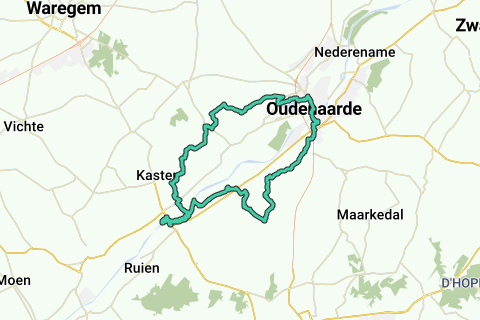 Route von 32 km, mit einem kleinen Anstieg. Sie kommen am Fuß des Koppenbergs vorbei, vorbei an zahlreichen Bauernhäusern. Die Route schlängelt sich größtenteils hin und her entlang der Ufer der Schelde. Dadurch werden Sie wunderschöne Ausblicke auf das Scheldetal genießen können.