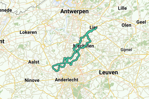 Pflanzengarten von Lier 120 km. Ausreichende Abwechslung in Bezug auf die Straßen. Auch Kopfsteinpflaster! Einige kurze Steigungen unterwegs. Der mittlere Abschnitt ist am schwierigsten wegen des Kopfsteinpflasters, sanfte Wege.