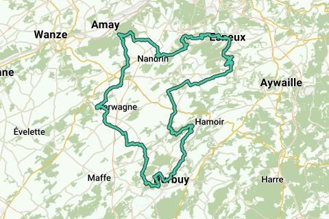 Die durchgehende Straße aus Esneux wird schnell verlassen, um die steile Côte de Strivay zu erklimmen. Danach erklimmst du den Col de Bonsgnée. Anschließend geht es auf und ab in Richtung Maasdal.