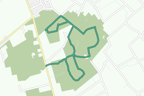 Es sind drei Routen mit einer Länge von jeweils 4,1 (blau), 4,7 (grün) und 6,1 (rot) km eingezeichnet. Nur für die grüne Schleife musst du die Straße überqueren. Du kannst die Routen leicht kombinieren. Die Strecken sind flach und du gehst abwechselnd über die Porphyr- und Sandwege, die durch diesen schönen Wald führen. Die Wege sind sehr geeignet, um bequem zu laufen.