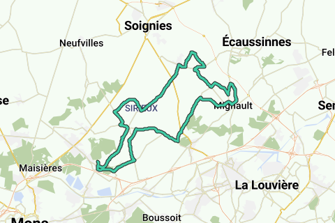Sie fahren jetzt über einen schmalen Asphaltweg und machen einen großen Bogen durch die agrarische Landschaft. Ignorieren Sie rechts den Weg nach Soignies und fahren Sie an der Ferme des Planques, der Ferme du Chêne Brûlé und der Ferme du Buchon bis zur Gabelung im Weiler La Saisine vorbei. Rechts, an der Ecke, steht die Chapelle Notre-Dame de La Saisine aus dem Jahr 1669. Biegen Sie links ab und fahren Sie über die Rue Reine de Hongrie bis zur Schlossmauer des Château du Parc. Folgen Sie der Mauer nach rechts und biegen Sie an der Kreuzung mit der achthohrigen Chapelle Notre-Dame de Lourdes (1875) links ab. Fahren Sie am Schloss und dem dazugehörigen gelben Schlossbauernhof bis zum Ausgangspunkt vorbei.