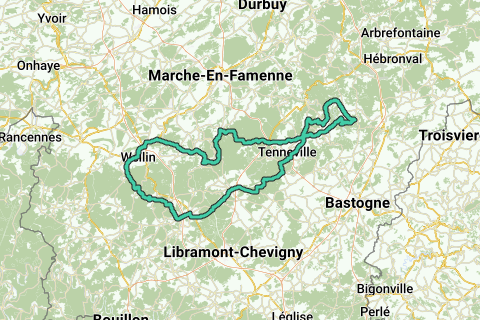 Die Route beginnt und endet in Nadrin, am Hotel „Les Ondes“, aber du kannst selbstverständlich überall auf dem Kurs starten. In Richtung La Roche wird die N860 kurz verlassen in Richtung Samrée, sodass das Aufwärmen nicht über diese größere Straße erfolgt. Etwas weiter links abbiegen nach Bérismenil, wo die N860 weiter in fallender Linie in Richtung La Roche verfolgt wird.