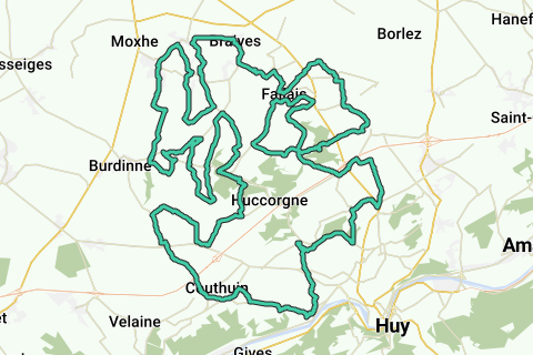 Bei Ciplet verlässt du das Mehaigne-Tal und gelangst wieder auf die Hochflächen der Haspengouw, mit seinen typischen Betonstraßen. Du fährst jetzt ins Tal des Flusses Burdinale. Dieser Fluss hat ein viel tieferes Tal als die Mehaigne ausgegraben. Danach steigst du immer wieder aus dem Burdinale-Tal hinauf und fährst wieder hinunter, wobei der Lauf der Burdinale flussabwärts verfolgt wird. Rund um Oteppe und Huccorgne warten ernsthafte Anstiege.