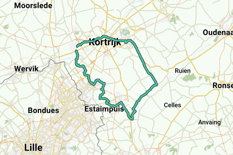 Wevelgem- Rekkem- Moeskroen- Herseaux-Pecq- Bossuit- Zwevegem-Kortrijk- Wevelem.