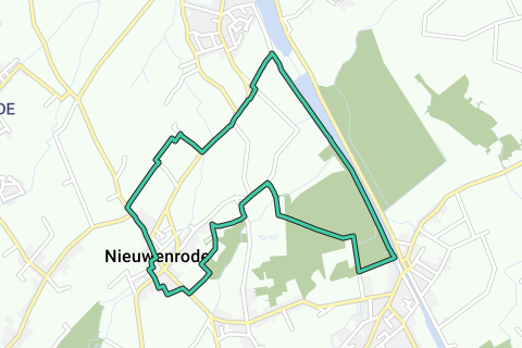 Von dem Parkplatz am CC De Oude Pastorie geh vorbei an der Kirche (rechts), folge den Schildern ‚Nieuwenroods Wanderpfad‘. An der Abbiegung geradeaus, vor dem Tor der Farm links, dem Pfad entlang der Mauer folgen, dann nach rechts der Asphaltstraße folgen, T-Kreuzung, der Paddegatstraße nach links folgen. Weiter geradeaus in der Nieuwenrodestraat in Richtung Wolvertem. Ignoriere die Straße rechts. An dem Kriegdenkmal geradeaus über den schönen Fußweg. An dem Haus mit der Beschriftung ‚Apotheke‘ rechts in die Mennaertstraße. Werde Feldweg zwischen Äckern (weite Sicht), über Asphalt, an T-Kreuzung mit Kapelle links über Asphalt. An der Kluisstegel rechts, Asphalt folgen. Vorbei an großer Absperrung, Armbosch Stegel folgen, über breite Feldwege und rechts folgen. Zwischen Äckern, nach 50 m links abbiegen. An der T-Kreuzung rechts, immer der Asphaltstraße folgen. Wieder eine T-Kreuzung, etwas größere Straße, jetzt links. Das ist die Molenstraße. Immer geradeaus (die Straße bei der Metzgerei und Veldstraat ignorieren). Nimm immer den Fußweg! Verlasse an der Kurve die Hauptstraße, rechts (Donkere Ham), in der Kurve links und dann sofort rechts (Vaartstraße). An der T-Kreuzung rechts in Richtung Containerpark. Geradeaus, am Containerpark erreichst du den Kanal.