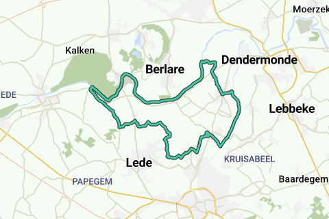 1. Treffen an der Sint-Apolloniakerk von Appels (V). Sie fahren über die Vrijstraat zwischen dem Gildenhaus und der Kirche in Richtung Schoonaarde. Nehmen Sie dann die erste Straße rechts, die Stuifstraat, und folgen Sie ihr bis zur N416. Überqueren Sie die Straße und fahren Sie in die Hofstraat. Ignorieren Sie die Seitenstraßen, überqueren Sie die Eisenbahn und treten Sie weiter bis zur Kirche von Oudegem. An diesem belebten Kreuzung müssen Sie kurz nach links abbiegen. Wo die Verkehrsstraße nach links abbiegt, fahren Sie geradeaus in die Varenbergstraat bis zur Dender. Die Dender hat ihren Namen von den Kelten (5.-3. Jahrhundert v. Chr.), die den Fluss ‘Tanara’ oder ‘Tanera’ nannten, was ‘die sprudelnde’ oder ‘die unruhige’ bedeutet. Meistens ist die Dender ruhig, aber sie kann sich innerhalb kurzer Zeit in den schnellsten Fluss Flanderns verwandeln. Folgen Sie der Dender nach rechts, also flussaufwärts, entlang eines Picknickplatzes und vorbei an der Schleuse (1) von Denderbelle. Dann haben Sie einen schönen Blick auf Mespelare mit seinem prächtigen romanischen Kirchturm aus dem 12. Jahrhundert. Einige Abschnitte entlang der Dender werden von Schilfgürteln flankiert und die agrarische Landschaft entlang des Flusses ist schön und beruhigend. Rechts liegt noch ein alter Denderarm.
