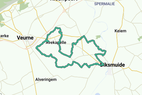 1. Treffpunkt in Steenkerke an der spätgotischen Sint-Laurentius-Kirche (V) (16. Jahrhundert) mit einem romanischen Turm (12. Jahrhundert). Gegenüber der Kirche stehen Statuen von Willem Vermandere vor seinem Haus. Mit dem Eingang der Kirche rechts beginnt diese Tour durch die Westhoek. Du ignorierst eine Sackgasse rechts neben der Kirche und radelst an einem Kapellchen vorbei zum Knotenpunkt 72 etwas weiter. Hier in Richtung 73, durch die offene Polderlandschaft entlang der Steengracht. Nach einer Kurve weiter über einen schmalen Weg für Radfahrer und Wanderer zwischen den Feldern. Überquere eine kleine Brücke und folge der Steengracht nach links. Auf der anderen Seite einige Höfen mit Brücken und rechts 't Riethof. An einer Eisenbahn nach rechts. An der Bahnbüberquerung, am Knotenpunkt 73, folgst du der Knollestraat in Richtung 19, vorbei an einem beeindruckenden Hof und etwas weiter über die Straße Veurne-Diksmuide (N35). Folge dann der Booitshoekestraat, in Richtung der Taverne Het Witte Huis, mit Knotenpunkt 19 an der Proostdijkvaart. Geradeaus, Richtung 20. Überquere die N330 und radle weiter in Richtung Booitshoeke. Ignoriere Nebenstraßen, überquere den Bommelervaart über die Bommelerbrug und radle weiter bis zum Knotenpunkt 20 an Café-Feestzaal De Landman. Lass den Weg nach Wulpen links liegen und radle weiter durch die Pervijzestraat, in Richtung 2. Am Knotenpunkt 21, einer Kreuzung, biege rechts in die Pastoor H. Scherpereelstraat ab, in Richtung 18, vorbei an der malerischen Sint-Audomarus-Kirche von Booitshoeke. An der Gabelung rechts ab und vorbei an Restaurant-Tearoom Boikenshoc und einigen Häuschen. An einer Kapelle links in eine Sackgasse, aber das gilt nicht für Radfahrer. An einer T nach rechts. Wo der schmale Asphaltweg rechts abknickt, folgst du dem Dolomietfahrradweg, neben der Proostdijkvaart nach links. An einem weißen Häuschen überquere den Kanal über die Fußgängerbrücke. Der Weg führt dich zur N35, die du über Treppen überqueren kannst. Auf der anderen Seite radelst du weiter über den Weg, der in einen schmalen Asphaltweg übergeht. Ignoriere Nebenstraßen und biege an der Gabelung mit der Stoppschilder rechts ab bis zu Knotenpunkt 18.