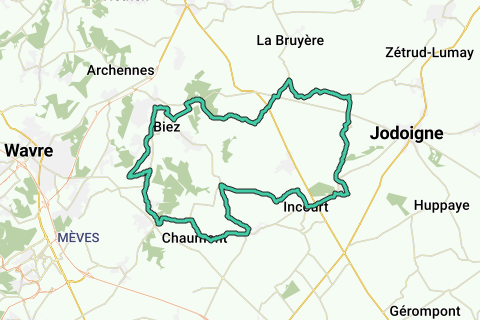 Begin mit der Kirche von Lathuy (V) auf deiner linken Seite und steig an der hohen Friedhofsmauer das Dorf hinaus. Lass dich von Nebenstraßen nicht ablenken und radle zwischen den Wiesen in Richtung Dongelberg. Du fährst durch einen Hohlweg, und nach einer sanften Linkskurve kommst du zu einer Gabelung, mit links einem Schild für Jodoigne-Souveraine. Überquere die Kreuzung und fahre weiter durch den chemin des Roches bis zur ersten echten Kreuzung. Hier nach rechts in die rue des Carrières einbiegen. Ignoriere links die rue du Pont Laurent, überquere den ruisseau d’Orbais und steig nach ein paar Kurven an einem alten Steinbruch bis zu einer Vorfahrtsstraße. Nach links und dann rechts in die rue d’Incourt. Du verlässt Dongelberg und steigst bis zur Straße Namur-Eghezée. Überquere die carrefour Robert Altman und fahre weiter bis ins Zentrum von Incourt. Nach rechts auf die Place des Fêtes und am Ende geradeaus in die 'Voirie étroite'. Die schmale Straße steigt leicht an und biegt nach links zur Kirche. Nach rechts. Ignoriere die Straße links neben der Kirche und wähle an der nächsten Gabelung nach links: eine Straße mit 2 Betonstreifen, für landwirtschaftliche Fahrzeuge, Radfahrer, Fußgänger und Reiter. Schöne Höfen und Ausblicke. An der Gabelung nach der ferme de Beaumont 1 nach links, über einen Kopfsteinpflasterstreifen. Ab den ersten Häusern wechseln die Pflastersteine zu Asphalt und die Straße wird wieder hol. Ignoriere alle Nebenwege und folge der rue d’Hoegaerde bis zum Ende. Folge jetzt der breiten Betonstraße nach rechts, sanft ansteigend, aber mit einem wunderschönen 360°-Panorama. Fahre geradeaus weiter, bis du nach dem Agglomerationsschild von Longueville die zweite Straße links abbiegen kannst: die rue de Sart-Risbart, wogend weiter, mit schönen Ausblicken. Rechts siehst du den sentier du Hurlain Pré mit einer schönen Kapelle. An einer Gabelung mit Kopfsteinpflaster biegst du rechts ab und sofort danach nach links in Richtung Sart-Risbart. Die Straße wird wieder etwas hohl und du fährst erneut über Beton. Nach einem Schild 'Traversée de chevaux' biegst du über einen kleinen Kopfsteinpflasterstreifen um einen weißen Hof mit Reitschule. Ignoriere alle Nebenwege und fahre weiter durch die sanfte Landschaft. Du kommst an einem Schlossanwesen vorbei, mit dem Schloss verborgen im Grünen. Lass die rue de Fontenelle rechts liegen und steig bis zur nächsten Kreuzung. Geradeaus geht es zur Kirche. Biege hier nach rechts ab und dann nochmal an der T-Kreuzung mit dem Spiegel. Lass die Straße nach Chaumont-Gistoux links liegen und fahre geradeaus in die offene Landschaft. Die sanft gewundene Straße wird ein Stück hohl und bringt dich zu einer fünf Wege Kreuzung. Nimm hier die rue Florémond rechts. Du bist jetzt in Chaumont und fährst über eine breite Betonstraße. An einer Kreuzung mit schräg links einer abfallenden Straße halte dich rechts. Links zwischen den Bäumen eine schöne Aussicht ins Tal und einen schneeweißen Wasserturm (im Art Deco-Stil und daher ein besonders Gebäude in Chaumont-Gistoux). Kümmere dich nicht mehr um Nebenwege und folge der rue Florémond so lange wie möglich geradeaus. Nach 1 km liegt links ein dreieckiger Platz mit der ansteigenden rue Ecoles des Filles. Ab hier folgst du der rue Fond du Village weiter geradeaus und nach 400 m nimmst du links die rue de l’Eglise. Achtung! Das Straßenschild ist aus der Richtung, aus der du kommst, nicht sichtbar. Es geht steil nach oben. Am Ende der rue de l’Eglise kommst du zur stark befahrenen chaussée de Namur (N91). Überquere sie und folge auf der anderen Seite der rue de Beauvechain zwischen den Feldern bis zur stark befahrenen chaussée de Wavre (N240). Zwangsweise musst du diese stark befahrene Straße 200 m nach rechts über einen schmalen 'Punktlinien-Fahrradweg' folgen. Biege dann nach links in Richtung Beauvechain ab und nimm anschließend die erste Straße scharf rechts, eine schmale, raue Schotterstraße. Ignoriere einen Weg links zu einem Bauernhof und wähle am Ende, an der Gabelung, links. Über Asphalt vorbei an der schönen Kapelle Saint-Antoine (16. Jahrhundert) und entlang eines großen Hofes bis zur ersten Kreuzung. Hier rechts in die rue de Hodebierge einbiegen. Am Ende nach links bis du die erste Straße rechts (= rue de la Maison du Bois, ohne Straßenschild) einbiegen kannst. Am Ende schräg rechts, also so gut wie geradeaus, in die rue des Beaux Prés, vorbei an einer schönen Kapelle (1919) und weiter in Richtung Mélin. Nach ein paar Kurven fährst du durch das malerische Zentrum von Mélin, vorbei an der Kirche und der Mauer des Friedhofs, die etwas höher liegt. Nimm danach mit einer scharfen Kurve die erste Straße rechts und steige entlang der imposanten ferme la Hesrée 5 bis zur chaussée de Wavre ab. Überquere sie und folge der rue de Dongelberg, ohne dich von Nebenwegen stören zu lassen, bis zu einer T-Kreuzung. Nach rechts bis du links in die rue Brocrui einbiegen kannst. Die Kirche ist jetzt ganz nah.
