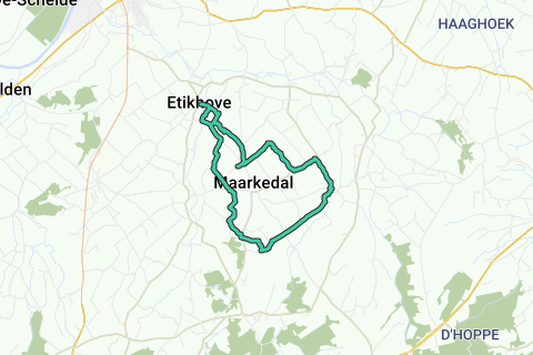 Termin in den Vlaamse Ardennen am alten Gemeindehaus von Etikhove (V), Teilgemeinde von Maarkedal. Das alte Gemeindebüro ist jetzt das Verwaltungszentrum der Fusionsgemeinde und es gibt ausreichend Parkmöglichkeiten. Gehen Sie rechts entlang des Etikhoveplatzes in Richtung Kirche und biegen Sie noch vor der Kirche nach rechts in die Puttene ein. Nach 200 m biegen Sie rechts ab, gehen geradeaus am OCMW-Gebäude vorbei und dann nach links und bergauf in die Onderbossenaarstraat. Gehen Sie oben an der T-Kreuzung nach rechts (Bossenaarstraat). Hier liegt links hinter dem Grün die Villa Tynlon 1. Der bekannteste Bewohner der Villa war der Maler Valerius De Saedeleer, der hier in den 20er und 30er Jahren des letzten Jahrhunderts die zentrale Figur einer Künstlerkolonie war. Lassen Sie die Langekouter links liegen. Nach 300 m, wo die Straße nach links und bergauf abknickt, steht das Hof zu Kattebeke 2. Das Hof bestand laut alten Schriften bereits vor 1517. 1842 gründete der damalige Besitzer dort einen Weinhandel. Die Familie Thienpont ist inzwischen ein international bekannter Name in der Weinbranche und unter anderem Eigentümer einiger der besten und renommiertesten Châteaux der Bordeaux-Weinregion. Ignorieren Sie rechts die Fortstraat und gehen Sie weiter bergauf in die Bossenaarstraat. Auch am Kreisel weiter geradeaus. Die Bossenaarstraat wird zur Poesthemstraat und biegt nach links ab. Gehen Sie neben der Hausnummer 6 (nach dem grünen Tor) nach rechts und nach unten auf einen breiten Feldweg. Genießen Sie die schönen Panoramen der Vlaamse Ardennen. An der T-Kreuzung nach links und an der nächsten T-Kreuzung erneut nach links und dann geradeaus und bergauf bis zur Vlaamse Ardennenstraat. Gehen Sie nach rechts und nach 40 m links in die Bosketse. Wo der Asphalt nach links abbiegt, gehen Sie geradeaus auf einem schmalen Pfad (Schild Wanderknotenpunkt 44). Der Pfad schlängelt sich zwischen Wiesen und Feldern, wird dann zu einem breiten Feldweg und schließlich zu Asphalt. Gehen Sie an der einspurigen Betonstraße nach links. Entlang der Straße stehen in den nächsten paar Kilometern einige schöne Kapellen. Lassen Sie die Beukelweg links liegen und gehen Sie 350 m weiter, an der Kreuzung, wo Sie die Delfdries links liegen lassen, weiter geradeaus in die Markette. Links steht das Molenhof 3, ein schönes weiß gestrichenes Backsteinhaus mit Müllerhaus. Die dazugehörige Sukkeleirsmühle stand bis Anfang des letzten Jahrhunderts auf der gegenüberliegenden Straßenseite. Lassen Sie auch die Bierweg links liegen und wandern Sie weiter in der Markettestraat bis zu Leideveld. Hier nach links und nach 40 m nach rechts in die Gorisveld. Wählen Sie an der Gabelung links nach Hokelbeke, in Richtung Kerkem und Wanderknotenpunkt 47. Geradeaus, einen Abzweig rechts ignorieren, und nach 500 m nach rechts und bergauf in die Bovenstraat. Etwas weiter steht ein Restaurant mit dem schönen Namen Het Genot op den Berg. Die Bovenstraat biegt etwas weiter nach links ab und schon sehen Sie die Bossenaarmühle vor sich. Am Ende der Bovenstraat biegen Sie rechts in die Aatse Heerweg (Achtung, die Straße hat an dieser Stelle einen anderen Namen). Es lohnt sich jedoch, zuerst ein paar hundert Meter weiter zur Bossenaarmühle 4 zu gehen. Diese Still-Mühle mit geschlossener Fuß und Satteldach, die bereits vor 1452 erwähnt wurde, wurde in den 90ern restauriert. Von der Mühle aus haben Sie auch einen herrlichen 360°-Panoramablick auf die Vlaamse Ardennen. Kehren Sie um und gehen Sie in die Aatse Heerweg. Ignorieren Sie einen Seitenweg rechts und gehen Sie 100 m weiter an der Gabelung nach links (Bossenaarstraat) und bald bergab in einen Hohlweg. Nehmen Sie am Ende des Hohlwegs, etwa zehn Meter nach der Kurve, einen Feldweg scharf nach rechts. Nach 350 m (und etwa 50 m vor einem weißen Fabrikgebäude) biegen Sie rechts auf einen einspurigen Betonweg in Richtung Wanderknotenpunkt 75 ab. Nach 200 m liegt links ein schmaler Pfad, immer noch in Richtung Wanderknotenpunkt 75. Gehen Sie von hier aus zurück zur Sint-Brixiuskerk und dem Verwaltungszentrum Valerius De Saedeleer.