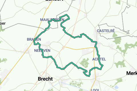 Termin an der Kapelle Unserer Lieben Frau von 7 Wehwehchen (V) in Achtel, einem Weiler von Rijkevorsel. Du bist hier an Knotenpunkt 29 und fährst in Richtung 28. An der Gabelung halte rechts und folge der Achtelsestraat, Richtung Hoogstraten, gleich durch eine offene Agrarlandschaft. In der Ferne siehst du bereits den Turm der Sint-Katharinakerk von Hoogstraten. Vorbei am Agglomerationsschild von Hoogstraten fährst du durch ein Wohngebiet bis zur Vrijheid. Folge dieser Straße nach rechts. Es mangelt hier nicht an Gastronomiebetrieben. Du fährst an der Sint-Katharinakerk vorbei, ignorierst rechts den Weg nach Wortel und kommst am Begijnhof 1 vorbei, ein Besuch wert. Nimm danach links die Tinnenpotstraat und folge dieser, ohne dich um Seitenwege zu kümmern, bis zum Ende. Rechts ab bis zur Moerstraat. Folge dieser nach links und nimm an der Gabelung rechts nach Princeven. Du fährst weiter zwischen Feldern und Wiesen bis zu Knotenpunkt 28, mit einem schönen Picknickplatz unter den Bäumen. Wähle hier die Richtung 33. An der T-Kreuzung links ab, über einen breiteren Asphaltweg, bis du rechts in die Blauwen Draaiboom einfahren kannst. Folge diesem Betonweg durch die offene Agrarlandschaft und entlang eines Wäldchens bis Knotenpunkt 33. Folge jetzt der Vlamingweg nach rechts, Richtung 94. Überquere die E19 und lasse dich auf der anderen Seite angenehm bis zu Knotenpunkt 94 treiben. Fährst weiter Richtung 51. Kümmere dich nicht um Seitenwege, überquere vorsichtig die Meerseweg und kurve weiter durch die offene Landschaft. An der T-Kreuzung rechts ab und dann links nach Valmoer 2, einem schmalen Betonweg, auf der linken Seite mit heimischen Eichen gesäumt. Überquere eine kleine Kreuzung und fahre weiter durch die offene Landschaft. Ignoriere einen Weg links und tretet weiter bis zur T-Kreuzung. Links ab. Ignoriere noch einen Seitenweg links und erreichst kurz darauf Knotenpunkt 51. An den niederländischen Gewächshäusern links ab, Richtung 56, ein Knotenpunkt des niederländischen Radnetzwerks West-Brabant. Lasse die Blauwputten links liegen und du fährst am Schloss Maxburg 2 vorbei, auch wenn du da nicht viel zu sehen bekommst, denn es liegt verborgen im Grün links von der Straße. An der nächsten kleinen Kreuzung links ab. Auch dieser Seitenweg heißt Maxburgdreef. Links, hinter der Wiese, die Mauer des Schlossgeländes. Gegenüber eines kleinen Bauernhauses wählst du Maxburgdreef 53 und fährst weiter vorbei an einem modernen Landwirtschaftsbetrieb und dem Waldrand und durch ein Wäldchen. Dies ist ein schwieriger Abschnitt, denn du musst über einen sandigen Weg fahren. Am Ende kommst du auf einen Asphaltweg, dem du nach rechts folgst. Nach einem Baumschulbetrieb gut aufpassen, denn plötzlich stehst du an Knotenpunkt 56. Wähle hier links, Richtung 90, durch Klein Maalbergen, vorbei an Gewächshäusern und einigen großen niederländischen Land- oder Gartenbaubetrieben. Nachdem du die niederländische Aa überquert hast, kommst du an eine T-Kreuzung. Folge der Mereltjesstraat nach links. An der Bauweise der Bauernhäuser siehst du, dass du in den Niederlanden bist. Rechts ein großes Gewächshauskomplex. Dann fährst du durch eine Allee bis zur T-Kreuzung. Jetzt folge der Lentsebaan nach links. Landwirtschaftsverkehr. Kurz danach geht die Lentsebaan in Tereik über und du bist zurück in Belgien und erreichst Knotenpunkt 90. Du fährst jetzt Richtung 93 über einen kerzengeraden Betonweg mit nur Landwirtschaftsbetrieben. Ein Schild warnt dich vor einer gefährlichen Kreuzung. Das scheint nur ein Weg zu sein, der dazu kommt. Bleibe geradeaus fahren. Kümmere dich nicht um Seitenwege und nach einigen Verkehrsberuhigungen fährst du durch ein Wohngebiet bis zu einer belebten Vorfahrtsstraße. Folge dieser kurz nach rechts über den separaten roten Radweg und biege dann links in Braken ein. Am Ende links, immer noch Braken bis Knotenpunkt 93. Hier links ab, in die Donkweg, Richtung 96. Am Ende der Donkweg folge der belebten N144 (Wuustwezelseweg) nach rechts, über einen getrennten roten Radweg. Biege dann die erste Straße rechts in, die Schottestraat, und lasse die Verbrand Hofstraat links liegen. Es geht weiter zwischen den Feldern, die Straße ist rechts mit Bäumchen gesäumt und du begegnest nur Landwirtschaftsfahrzeugen. Dann fährst du direkt auf ein enormes Gewächshauskomplex zu. An der T-Kreuzung links ab, über einen schmalen Betonweg, durch die offene Landschaft und vorbei an einem Bauernhof bis zur nächsten T-Kreuzung. Rechts ab. Du folgst jetzt der Neervenweg bis zur Gabelung an einem dreieckigen Platz. Halte hier rechts und folge der Heiendweg, bis du links in die Zandweg einbiegen kannst, eigentlich ein schmaler Asphaltweg. Am Ende links in die Stapelheideweg, bis zur belebteren Brechtsebaan. Überquere, folge kurz dem roten Radweg nach links und biege dann rechts in die Tommelbergweg ein. Fahr zwischen den Wiesen bis zu Knotenpunkt 96 und wähle hier rechts, das Boerenijsje und Richtung 97. Du folgst jetzt der Henxbroekweg bis zu Knotenpunkt 97. Hier wählst du 09 und kommst auf einen breiteren Betonweg, den du kurz nach rechts folgst. Biege dann links in Vogelzang ein. Immer noch durch eine Agrarlandschaft, aber jetzt sind die Straßen oft mit Bäumen gesäumt. Picknicken. An einer kleinen Kreuzung bei einem Bauernhof fährst du geradeaus Laboureur auf. In der Ferne siehst du den Turm der Sint-Katharinakerk von Hoogstraten. An Knotenpunkt 09, mit links an der Ecke einer Picknickplatz an der Henweg, rechts ab, Richtung 39. Überquere dann vorsichtig die belebte Hoogstraatsebaan (N115) und folge dem roten Radweg kurz nach links, bis du rechts in die Rijkevorselseweg einbiegen kannst, ein schmaler Betonweg zwischen Wiesen und Feldern, der in die Korenblokweg übergeht. An der Hofstelle Hoenderheide folge an einer T-Kreuzung Kleine Gammel nach rechts, bis du links in die Karreweg einbiegen kannst, ein Weg mit zwei Betonstreifen und einem Grasstreifen in der 