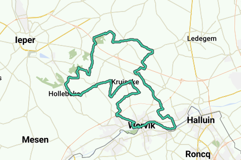 Die Region rund um Wervik hatte einst eine blühende Tabakindustrie. In diesem Land voller Wiesen, Felder und Wälder sind Pfeife und Tabak Trumpf. Die Tabakplantagen prägen die Landschaft. Auch die Erinnerungen an '14-18', und insbesondere an den berüchtigten östlichen Rand des Ypern-Vorstoßes, sind hier lebendig. Du fährst durch das Provinzgebiet De Palingbeek, den Domainwald Den Doel und die Ieper O.C.M.W.-Wälder.