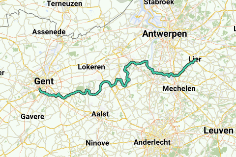 Die Route beginnt am AZ Maria Middelares in Gent. Über Melle zum Schelde, der größtenteils bis Sint Amands gefolgt wird, das durch die Benutzung der Fähre erreicht wird (fährt jede halbe Stunde, aber nicht um 12:30 Uhr!).