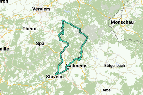Von Jalhay über eine alternative der längsten Steigung Belgiens bis zur Spitze des Baraque de Fraiture. Dann über die Ferme Libert Richtung Stavelot. Einige Kilometer vor Stavelot auf dem RAVel 45 durch den Tunnel unter der Haute Levée und dann über den PréRAVeL Linie 44a und Solwaster zurück zum Startpunkt.