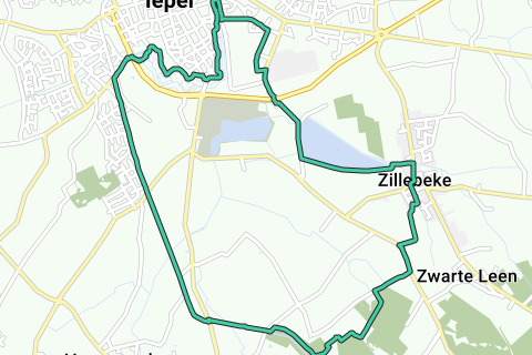 Mit dem Rücken zu den Löwen am Menenpoort gehst du RA Hoornwerk hinein. An der Hausnummer 23 LA Vaubanstraat bis Nr. 85. RA Citadelstraat entlang des Hoornwerkparks bis Camping Jeugdstadion mit Stellplätzen (Self-Check-in). RD Wanderknotenpunkt (KP) 33 folgen, entlang des Fußballstadions, unter dem Kreisverkehr hindurch und beim Yperner Friedenswald über den Zillebekevoetweg bis B&B-Brasserie Het Vijverhuis und Naturschutzgebiet Verdronken Weide. RA und rund um den Zillebekevijver bis zu KP 69. RA zu KP 23. Du gehst durch Zillebeke-Dorf, RA kurz durch die Blaupoortstraat, danach einen Weg LA und über die Perseweide zum Larch Wood Railway Cutting Cemetery. Über die Bahnlinie und an der T-Kreuzung LA. Gehe ganz bis zu KP 23 über die Verbrandemolenstraat mit weitem Blick auf Ypern und kurz vor einem weiteren Militärfriedhof LA in den Molenbos. An KP 23 RD zu KP 22 bis zum kleinen Hedge Row Cemetery. RA um den Friedhof herum über einen stark matschigen Weg. Weiter bis zu KP 22 und RD zu KP 18 entlang dem Astrolab Iris mit Cafeteria und WC, gleichzeitig Eingang zum Provinzialen Gebiet De Palingbeek. An KP 18, oben auf einem Hang, RA zu KP 19 durch einen dünnen Laubwald. An KP 19 RD zu KP 20 mit einem großen GR-Wegweiser, einem Unterstand mit WC und dem Spoilbank Cemetery. RD bis KP 47 über den Asphalt des Bijlanderpad entlang des Kanals Ypern-Komen und nach der N336 entlang des anderen Ufers des Kanals. Erneut ein ganzes Stück RD und über die N133 bis KP 60. Hier bekommst du endlich das Wasser gut zu sehen. RD zu KP 61, unterwegs wechselst du noch einmal das Ufer. An KP 61 RA zu KP 62. Dabei überquerst du unter anderem die Bahnlinie und die belebte N37b, um schräg rechts, neben der Steinerschool, bei KP 62 RD zu wählen und KP 64 entlang der Majoorgracht bis zum Ramparts Lille Gate Cemetery zu folgen. Folge weiter über die Vaubanvestung und entlang des Kasteelgracht in Richtung KP 63. Unterwegs siehst du das Menenpoort schon wieder stehen.