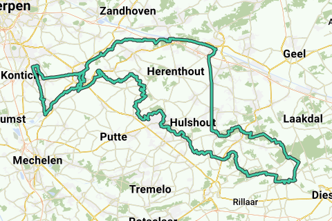 Diese Route folgt demselben Verlauf wie die Basisroute, beginnt jedoch mit einer zusätzlichen Schleife von etwa 25 km. Von Lier aus folgt diese Schleife der Eisenbahnlinie bis nach Lint. Über den Hove Park folgt die Route der Fahrradautobahn F1 in Richtung Mechelen, die kurz hinter der Eisenbahnbrücke über die Nete verlassen wird, die bis nach Lier weiterverfolgt wird. Danach folgt diese lange Version der ursprünglichen Route.