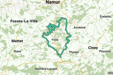 Richtung Awagne, bevor Sie in Richtung Dinant abtauchen und am linken Ufer der Maas zurückkehren, während Sie das mittelalterliche Dorf Bouvignes überqueren.