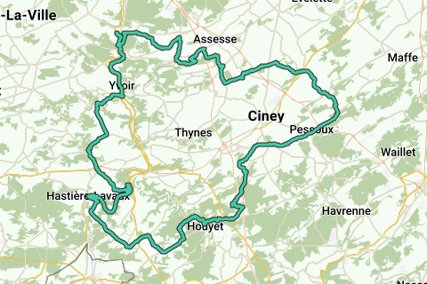 Diese Strecke ist einer der schönsten Ausflüge, um die Region zu entdecken. Sie führt uns durch das Condroz cinacien, um das Schloss Skeuvre zu entdecken, das Franquin als Modell für das Schloss des Grafen von Champignac diente. Von Hamois aus geht es in Richtung Houyet, nachdem wir das Tor zu den Ardennen passiert haben. In Herhet kann man eine wunderbare Landschaft bewundern. Wir erreichen das Tal der Maas, das wir bis Freyr (Schloss mit seinem Orangerie und seinen französischen Gärten) entlangfahren werden. Der Radfahrer wird dann in Richtung des linken Plateaus aufsteigen, um das Tal der Molignée zu erreichen. Nachdem wir die Maas eingeholt haben, kehren wir ruhig zurück, indem wir dem Fluss zwischen Anhée und Profondeville folgen.