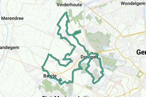 Scopri tutti i vantaggiErkundungsroute mit dem Fahrrad durch Drongen. Es gibt einige kurze Abschnitte, die, besonders bei Regenwetter, etwas schlecht befahrbar sein können.