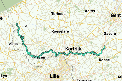 Die zweite Etappe in unserem RvV führt uns über das Hoppeland um und rund um Poperinge ins Heuvelland, wo die ersten Anstiege auf uns warten. Der Kemmelberg wird sicherlich eine Herausforderung. Vorbei an der kleinsten Stadt Belgiens geht es nach Kortrijk an den goldenen Fluss. Bevor wir die Radsportstadt Oudenaarde erreichen, werden noch einige Wadenbeißer für die Räder geschoben. Das Nachgenießen tun wir auf einer hoffentlich sonnendurchfluteten Terrasse mit einem Oudenaarder Bräu.