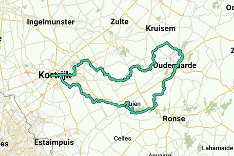 Für diejenigen, die weniger sportlich fahren wollen: Von Oudenaarde (nach 52 km) gibt es eine sehr gute Zugverbindung nach Kortrijk.
