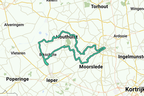 Alle sportiven Distanzen verlassen Roeselare über Oostnieuwkerke in Richtung Westrozebeke. Du fährst in die ländliche, hügelige Landschaft Zentral-Westflanderns in Richtung der ‘Keuneleute’ und ‘Stadenberg’. Über Houthulst und Merken erreichst du den ‘Ieperleekanaal’.