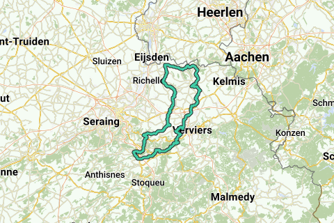 S.M.V. – S.G.V. – Warsage – Mortroux – Mauhin – Charneux – Herve – José –Wegimont – Olne – Forêt – Trooz – Kreisverkehr rechts Richtung Beaufays - Gomzé - Haie des Chênes – links Rue de Pêcherie – Rue du Wachiboux – Hornay-Ogné – Sendrogne – Blindef – Louvegné – Richtung Fraipont – Banneux – Pepinster – ΔWegnez – Soiron – Lambermont – Petit Rechain – Houlteau – Thimister – La Clouse – Aubel – Schlachthaus – Mabroek – Remersdaal – Teuven - Varn – De Plank - S.M.V.
