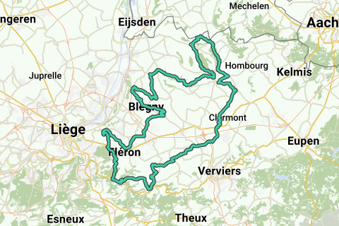 S.M.V – ∆ Ulvend – De Plank – Hagelstein – Slachthuis – ∆ La Clouse – Crawhez – ∆ Thimister – Houlteau – ∆ Chaineux – Manaihant – Bruyères – Xhendelesse – Rafhay - Olne – Nessonvaux – ▲“Thier de Hansez” - Hansez – Forêt – Prayon – ∆ La Rochette – A Bouny – Romsée – Beyne-Heusay – Fayembois – Jupille-sur-Meuse – Moulin-sous-Fléron – ▲“Rue Heid des Chênes” - Retinne – Evegnée – Cerexhe-Heuseux – Bolland – ▲“Thier Fouarge” - Blegny – Saint-Remy - Mortier – Trembleur – Chenestre – Mortroux – Val-Dieu – Aubel – ∆ Magis – S.P.V. – S.M.V.