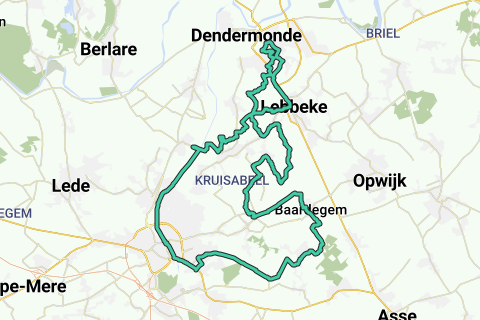 Die Faljuintjes-Fahrradroute mit Start in Dendermonde in Richtung Knotenpunkt 94 -32-37-43-39-40-41-44-45-47-46-38-36-34-37-28-29-29-30-31-32-94