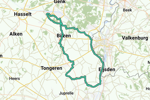 Diepenbeek- Munsterbilzen- Kanne- Ternaaien- Haccourt- Heure Le Romain- Houtain St. Siméon- Bitsingen- Glaaien- Sluizen- Millen- Genoelselderen- Rijkhoven- Hoeselt- Bilzen- Schoonbeek- Diepenbeek.